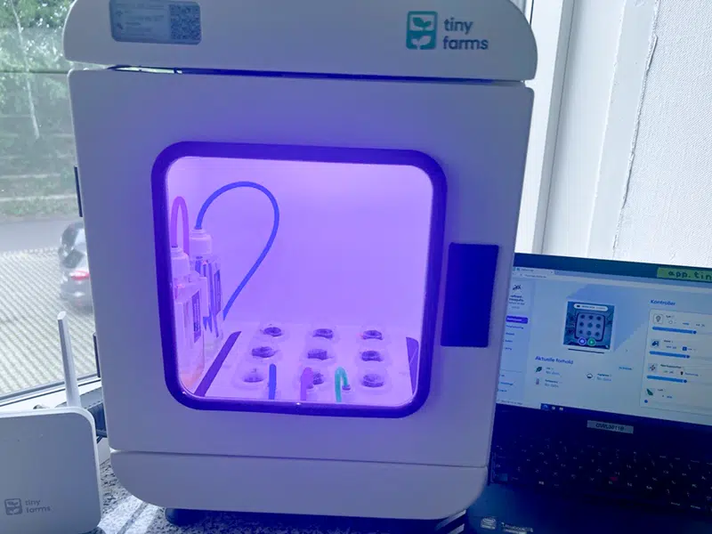 Tinyfarms er et programmerbart interaktivt lille plantelaboratorium, der kan inspirere elever til at dyrke og udforske op til ni planter i en periode i fag som biologi, natur og teknik eller i naturfaglige projektforløb. Tinyfarms indbyder elever til at udfolde sig undersøgende sammen med planter og teknologier.